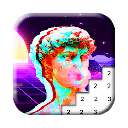 تلوين كل بكسل بالعدد بالالوان الصحيحة بالعدد إلى أن تملا كامل أعمال Vaporwave الفنية. قم بالطلاء الآن أكثر من 200 مستوى من مستويات Pixel Art مجانًا ، بل اجعل مستوياتك خارج الصور!