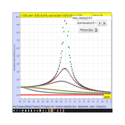 يظهر محاكاة (N = 100) أنظمة الربيع الشامل متطابقة التعرض لل(1) القوة الدافعة دورية متساوية السعة ولكن الترددات القيادة المختلفة و(2) كمية مختلفة من التخميد. وتهدف محاكاة لخلق وسيلة بديهية بصريا من فهم كيف يتم الحصول على سلسلة من السعة مقابل دفع الرسوم البيانية تردد خلال إظهار كيفية تهجير تغييرات في النظام مع مرور الوقت لانها تعبر عن عابرة إلى حالة مستقرة.