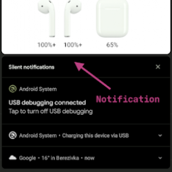 يعرض برنامج AirDroid مستوى البطارية الحالي لجهاز AirPods pro المتصل في إشعار مباشر و / أو نافذة منبثقة صغيرة.