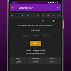 يمكنك أن ترى كيف تعمل خوارزمية الفرز خطوة بخطوة ، والتصور في الوقت الحقيقي للفرز والحالات المختلفة لتعقيد الوقت للخوارزمية.