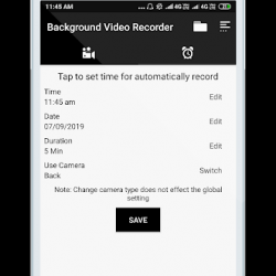 مسجل فيديو الخلفية (BVR) عبارة عن كاميرا برنامجات تساعدك عادةً في تسجيل الفيديو في الخلفية مع السماح بخيار تمكين / تعطيل صوت مصراع الكاميرا ومعاينة الكاميرا. مع العديد من الوظائف المفيدة كمتابعة التسجيل عند إيقاف تشغيل الشاشة أو جدولة التسجيل. سهل الاستخدام البرنامج بنقرة واحدة اختصار مسجل فيديو (سجل سريع) أو بنقرة واحدة القطعة.