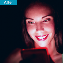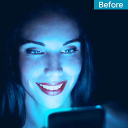 إنه جزء من طيف الضوء الطبيعي ، الذي يزعج الإيقاع اليومي ويسبب الارق والصداع وصحة العين السيئة. بخلاف الظل الليلي للضوء الاحمر ، يحجب ضوء المصباح الخفيف إفراز الميلاتونين ، وهرمون النوم ، ويسبب القلق. الخلايا العصبية في شبكية العين في خطر إذا لم يتم استخدام مرشح ليلي مضاد للوهج بعد الشفق للعناية بالعين.