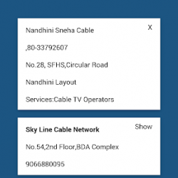 يقدم كابل Links- مشغل برنامج بحث كنقطة مركز للعثور على مشغلي تلفزيون الكابل داخل المدينة واللغة المختارة. يحتاج المستخدم لتحديد المدينة التي مشغل تلفزيون الكابل وأن يكون موجودا والمفتاح في المنطقة أو المشغل اسم أو معلما. والبرنامج نبحث عن مشغل تلفزيون الكابل المطابقة للمعايير البحث وتظهر لك النتائج. ويمكن للمستخدمين العثور على أسماء المشغل وتفاصيل مثل عنوان المشغل، رقم الجوال، رقم السطر الارض، وما إلى ذلك معلما من البرنامج.