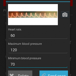 لديك فقط لالتقاط صورة لشاشة العرض التي تعرض الشرياني منحنى الضغط نبض المريض الخاص بك. اقتصاص إشارة إلى أن تريد تحليلها، وأدخل قيم ضغط الدم ومعدل ضربات القلب.