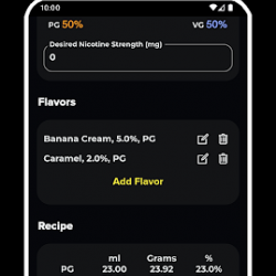 سهلة الاستخدام Vape E-Juice Calculator لكل vaper.. سهلة الاستخدام Vape E-Juice Calculator لكل vaper. يتيح لك البرنامج حساب كمية كل مكون بدقة وحفظ الوصفة للاستخدام المستقبلي.