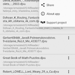 - البحث عن جميع ملفات DjVu في تخزين الجهاز بواسطة المجلدات التي يسمح للمستخدم بالوصول إليها;