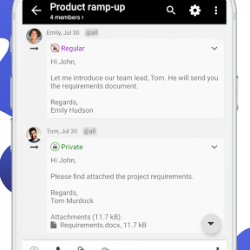 تعاون مشفر آمن مع ضوابط الخصوصية. نموذج جديد للتعاون الخاص المشفر مع العديد من ميزات التعاون والرسائل السحابية مع الاستقلالية - مثالي للموظفين الذين يعملون عن بُعد والمستهلكين. يتكامل بإحكام مع البريد الإلكتروني الخاص مما يسمح بالتبديل بين التعاون والبريد الإلكتروني وتمكين عرض موحد ، مع إضافة عناصر تحكم في الخصوصية والتشفير. أنشئ عنوانًا افتراضيًا خاصًا جديدًا ، أو استخدم حساباتك الحالية ، للبريد الإلكتروني المشفر باستخدام عناصر التحكم في الخصوصية. يمكن أيضًا رؤية رسائل التعاون كمحادثات بريد إلكتروني. تنظيم وتأمين عملك والتفاعلات الشخصية مع الانشطة ودوائر الخصوصية. أضف أعضاء (EPRIVO أو غير تابع لـ EPRIVO) إلى نشاط للتعاون بشكل خاص عبر البريد الإلكتروني. شارك الموارد والمعالم في الانشطة. يمكن تشفير المعلومات / الموارد المتبادلة وإضافة ضوابط الخصوصية. استدعاء الرسائل المشفرة المرسلة في أي وقت لجعلها تختفي. سهولة الحفاظ على الخدمة المجانية بعد التجربة.