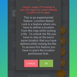 4. قفل / فتح الملفات (بناءً على الموقع): يشبه هذا تقريبًا قفل الملف العادي ، لكن أثناء قفل الملف ، سيُطلب منك اختيار موقع عبر خريطة google التي تحمل ثباتًا. بعد اختيار الموقع ، سيُطلب منك تحديد ملف. بعد ذلك سيتم قفل الملف أو تشفيره مع بيانات موقعك.