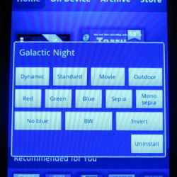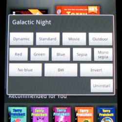 المجرة ليلة هو البرنامج التجريبي لnightmode الجذور سامسونج غالاكسي S2، S3 وملاحظة 1 الهواتف (لا يكلف نفسه عناء محاولة على الاجهزة الاخرى) التي تمكنك من تحديد صيغ الالوان المختلفة على الهاتف الخاص بك للاستخدام في الظلام، لحفظ البطاريات، لعلم الفلك ، قراءة الكتاب الاليكتروني في الظلام (وأثناء النهار) ولاغراض أخرى. وسائط الخاصة المعتمدة حاليا على العديد من الاجهزة ما يلي: الاحمر والاخضر والازرق، وعدم الازرق، البني الداكن، الاسود والابيض، عكس وخارجية. على سبيل المثال، في وضع أحمر، يتم تقديم كل شيء في ظلال من اللون الاحمر. في الاتجاه المعاكس، يتم عكس جميع الالوان، التي هي لطيفة لتصفح الإنترنت ليلا. في بني داكن، يتم استبدال الابيض مع البني الداكن.
