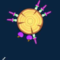 جزء مثير للاهتمام من لعبه Knife Hit هذه ، يجب على اللاعب رمي السكاكين في السجلات لكسرها ويجب عليك أيضًا قطع التفاح (Fruits) لفتح السكاكين الجديدة المصممة. يتم الدفاع عن كل مرحلة خامسة من قبل رئيس - تغلب عليهم للحصول على سكاكين مصممة حصرية.