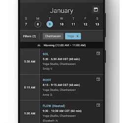 جداول الفصول والفعاليات والحجوزات: ابحث عن الفصول المفضلة لديك أو جرب شيئًا جديدًا في جداول الفصول الدراسية لدينا مع حجوزات لك وللآخرين في عضويتك.