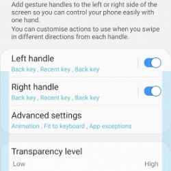 عند تعيين الميزة ، تتم إضافة مقبض إيماءة رفيع إلى الجانب الايسر / الايمن من الشاشة.