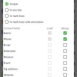 يوفر البرنامج القدرة على استعادة جهات الاتصال من ملف txt أو جدول بيانات Google. نظرًا لصعوبة التعرف على المحتوى الموجود في الملفات النصية - يمكن للبرنامج قراءة الاسماء ورسائل البريد الإلكتروني وأرقام الهواتف فقط. يمكنك كتابة ملف وتحميل جهات الاتصال منه إلى هاتفك. استخدم أحد التنسيقين - سطر مفرد أو متعدد الخطوط.
