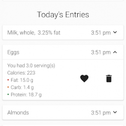 يمكنك تعيين وحدات الماكرو التي ساهمت في المئة من السعرات الحرارية أو غراما. هناك ميزة لإضافة المواد الغذائية التي كنت قد أكلت إلى المفضلة لديك حتى تتمكن من إضافة بسرعة وحدات الماكرو من الطعام والحصول على وجبة الخاص بك.