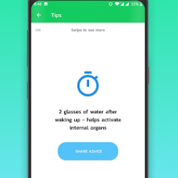 سيتيح لك هذا البرنامج الحصول على رسم بياني لكمية المياه التي شربتها في الايام السابقة. سيقوم البرنامج بتوليد تذكير بمياه الشرب وفقًا للفاصل الزمني الذي حددته وسيطالبك بشرب الماء.