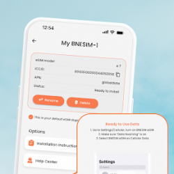 BNESIM eSIM هي بطاقة SIM افتراضية تتم إدارتها بالكامل من خلال برنامجنا، حيث يمكنك: